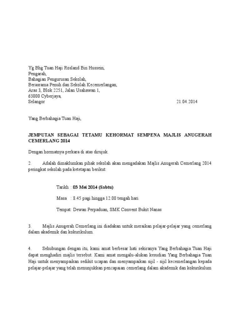 Surat Jemputan Ke Majlis Anugerah Cemerlang